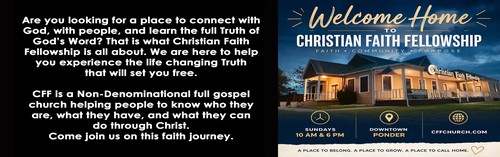 Click on the above link to stay up to date and see our calendar of events at Christian Faith Fellowship.